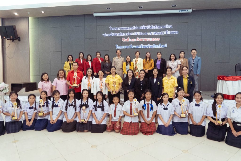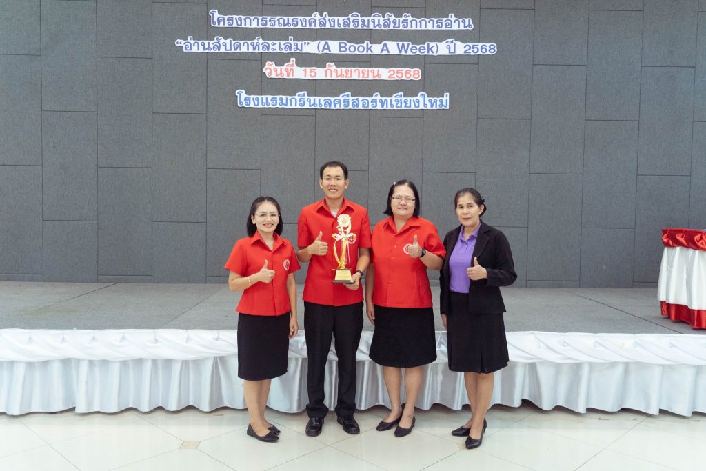 แสดงความยินดีกับรองเจริญทรัพย์ ยาโนยะ รองผู้อำนวยการโรงเรียนศรีจอมทอง ในโอกาสที่ได้รับรางวัลชนะเลิศการนำเสนอนวัตกรรมที่ใช้ในการรณรงค์ส่งเสริมนิสัยรักการอ่านของครูผู้สอน ระดับชั้นประถมศึกษา โครงการรณรงค์ส่งเสริมนิสัยรักการอ่าน “อ่านสัปดาห์ละเล่ม” (A book A week) ปีการศึกษา ๒๕๖๘ ระดับจังหวัดเชียงใหม่ ###การนำเสนอนวัตกรรมส่งเสริมนิสัยรักการอ่านในหัวข้อ” Smart Reading อ่านสนุกยุคดิจิทัล” ##ณ โรงแรมกรีนเลค จังหวัดเชียงใหม่ ##วันจันทร์ที่ ๑๕ กันยายน ๒๕๖๘